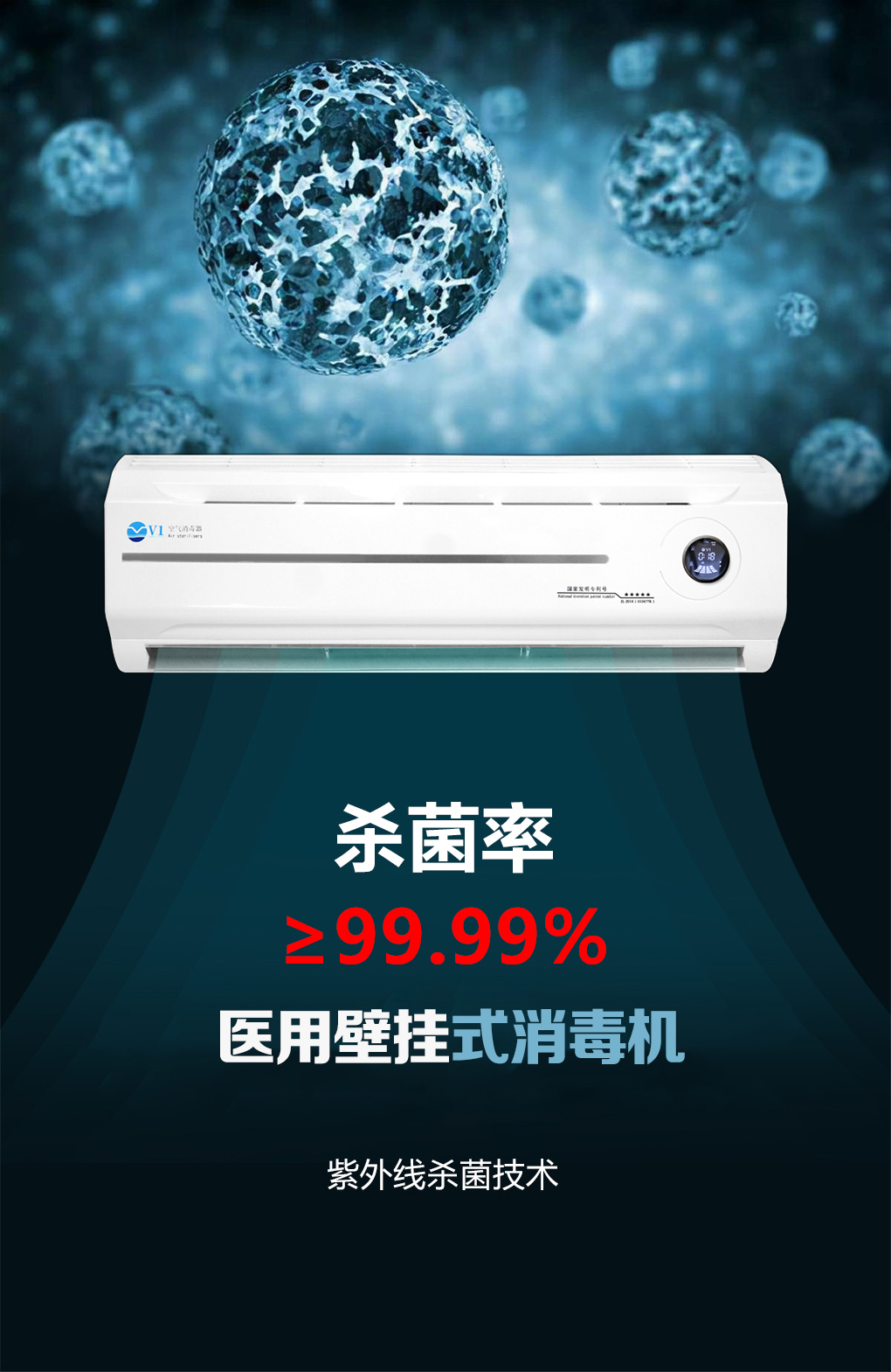 菜单产品中心Product center 空气消毒机 壁挂式空气消毒机 柜式空气消毒机 嵌入式空气消毒机 吸顶式空气消毒机 移动式空气消毒机 中央空调净化装置 风柜式空气净化装置 管道式空气净化装置 光氢离子空气净化装置 回风口式空气净化装置 废气处理设备 不锈钢喷淋塔 干式化学净化箱 活性炭吸附箱 静电式油烟净化器 一体光氧废气处理机 一体扰流喷淋除臭设备 空气过滤器 FFU过滤器 初效过滤器 高效过滤器 中效过滤器 全国服务热线 13724415008 您的位置:首页 →产品展示 > 空气消毒机 > 壁挂式空气消毒机 < > 医用壁挂式消毒机关键词:医用壁挂式消毒机,医用壁挂式空气消毒机,医用壁挂式消毒机厂家 简介: 产品特点:1.采用优质的石英玻璃管,具有长寿命、高强度、低光衰2.内置抗菌防霉过滤网过滤空气中的尘埃3.采用智能控制板,根据室内空气环境的等级自动开机消毒4.采用高清的LED显示,可视角度达到1605.具有PM2.5、空气质量、温湿度监测功能6.具有三种工作模式,自动、定时、手动模式任意切换:7.可设定六个定时工作时间段,定时循环运行8.具有高速、中速、低速三种档位风速运行9.远距离红外线接收遥控器,可倾斜45°任意操控 产品说明 医用壁挂式消毒机是专为医疗环境设计的墙面挂装型空气净化设备,集成紫外线(UVC)、等离子体、HEPA过滤、活性炭吸附等多级技术,实现医疗级高效杀菌、广谱净化及人机共存模式下的持续消毒。其核心定位是解决医疗场景中空间受限、高洁净度需求及持续消毒的挑战,适用于手术室、ICU、隔离病房、诊室、走廊等医疗空间。 相关产品 干式化学过滤箱 活性炭环保吸附箱 不锈钢喷淋除雾塔 不锈钢洗涤塔 干式化学过滤器 不锈钢喷淋塔
