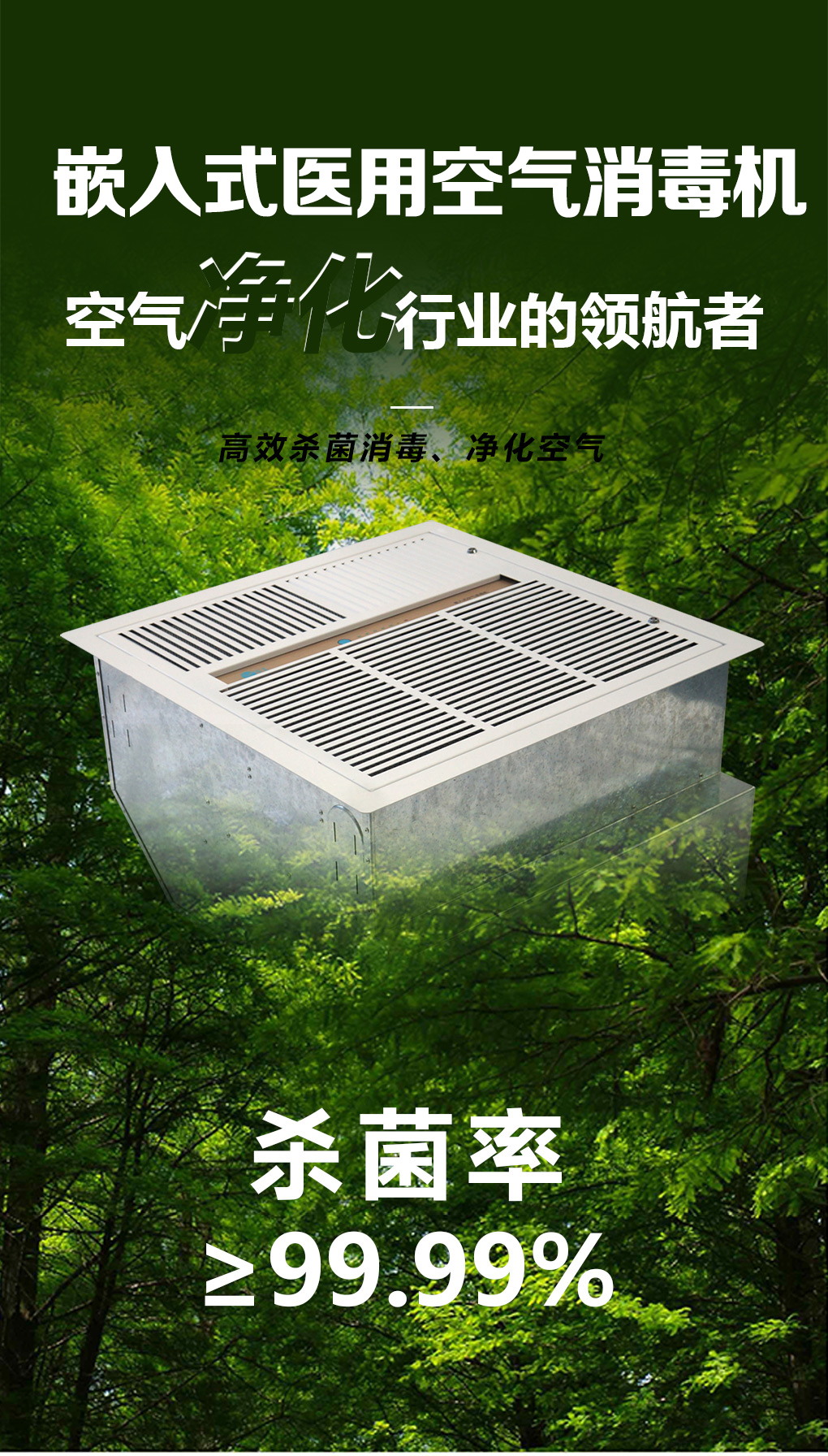 菜单产品中心Product center 空气消毒机 壁挂式空气消毒机 柜式空气消毒机 嵌入式空气消毒机 吸顶式空气消毒机 移动式空气消毒机 中央空调净化装置 风柜式空气净化装置 管道式空气净化装置 光氢离子空气净化装置 回风口式空气净化装置 废气处理设备 不锈钢喷淋塔 干式化学净化箱 活性炭吸附箱 静电式油烟净化器 一体光氧废气处理机 一体扰流喷淋除臭设备 空气过滤器 FFU过滤器 初效过滤器 高效过滤器 中效过滤器 全国服务热线 13724415008 您的位置:首页 →产品展示 > 空气消毒机 > 嵌入式空气消毒机 < > 嵌入式医用空气消毒机关键词:嵌入式医用空气消毒机,嵌入式医用空气消毒器,嵌入式空气消毒机 简介: 产品特点:1.专利技术创新设计:四个出风口,中间进风口,全面消毒2.采用微电脑控制、定时、自动、两个工作模式任意选择3.人机共存:有人状态下动静态持续消毒、净化4.等离子体杀菌技术,除尘效率高,使用寿命长5.可设定机组编号和遥控器编号,以免遥控器时控制多台机器6.定时及手动模式下,可选择高、中、低风愉速档运行7.断电重启记忆功能,清洁及故障提示功能8.具有打开面盖自动断电功能,维护和保养安全可靠9.低消耗能、集尘量大,维护方便,只需定期对半导体电场清洁即可 产品说明 相关产品 干式化学过滤箱 活性炭环保吸附箱 不锈钢喷淋除雾塔 不锈钢洗涤塔 干式化学过滤器 不锈钢喷淋塔
